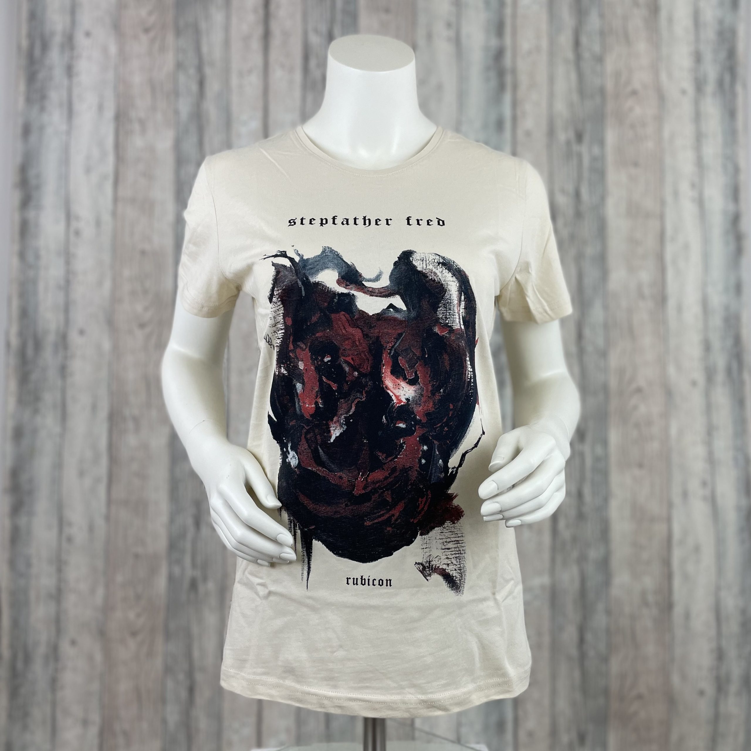 Stepfather Fred Girly im rubicon Album Design passend zum rubicon Album. Der Druck ist das original Öl auf Leinwand Gemälde von Felix Wagner, welcher unser Cover designt hat. Deswegen gibts das Shirt passend in dezentem beige. Hochwertiger Druck & bequeme Passform.