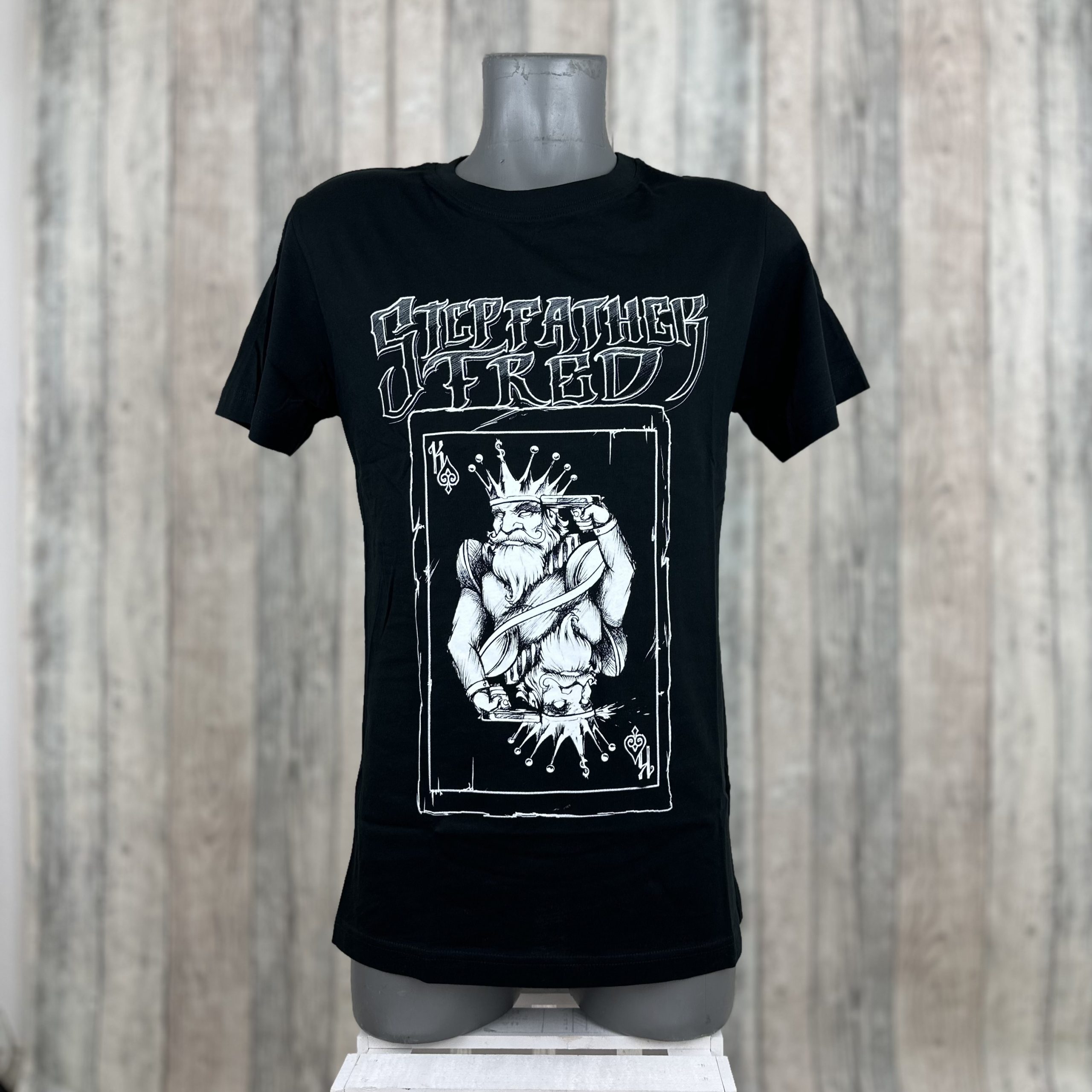 Das schwazre Stepfather Fred Shirt im King Design. Gezeichnet hat diesen Print unser Freund und Tättowierer Eugen Schreiner vom Stechwerk Kempten. Hochwertiger Druck & bequeme Passform.